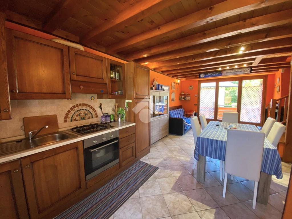 Proponiamo in vendita a Onore una soluzione abitativa disposta su due livelli, ideale sia come prima casa che come casa vacanza, grazie alla sua distribuzione funzionale e alla posizione tranquilla.